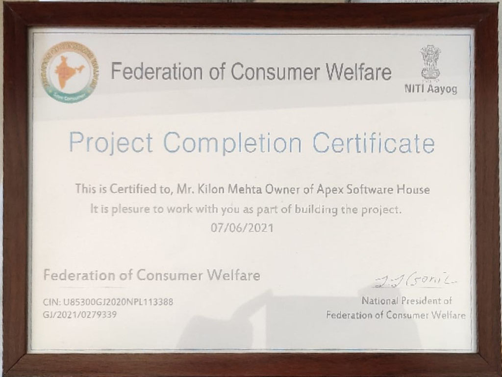 -> Apex Software completed project from Federation of Consumer Welfare.